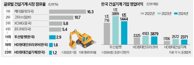 | 헤드라인 | 인도 1위 눈앞…K건설기계, 신흥시장서 질주 산업 리포트 HD현대건설기계, 印 점유율 2위 인프라코어는 멕시코 공략 가속 두산밥캣도 UAE·브라질 공들여 中 건설 침체·북미 판매 감소 신흥시장 성과가 실적 가를 듯 |