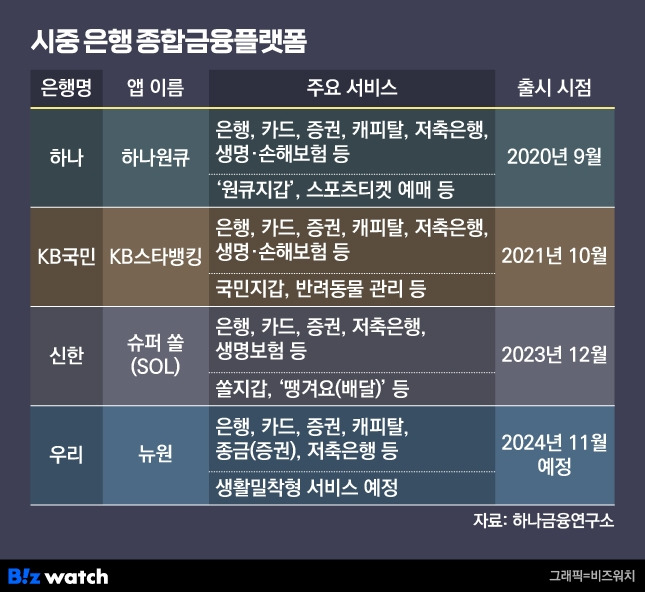 | 기사 제목 | 우리금융 슈퍼앱 'New WON'으로 뒤집기 가능할까 11월말 뉴원 출시로 슈퍼앱 준비 카드·캐피탈·증권 등 하나로 연결 후발주자, 차별화 전략 필요 |