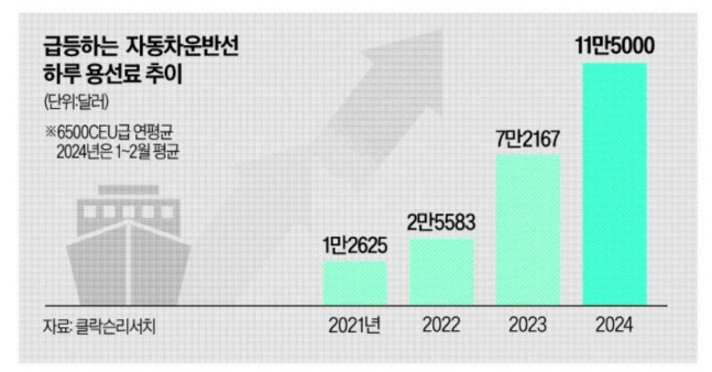 | 헤드라인 | "車 만들면 뭐하나"…운반선 '용선료' 10배 뛰자 벌어진 일 |