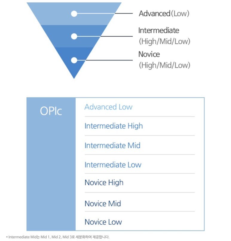 강의에서 목표로 하는 등급은 Intermediate High(IH) 이상이고, 저는 오픽 최고 등급인 Advanced Low(AL)을 목표로 공부하고 있습니다.