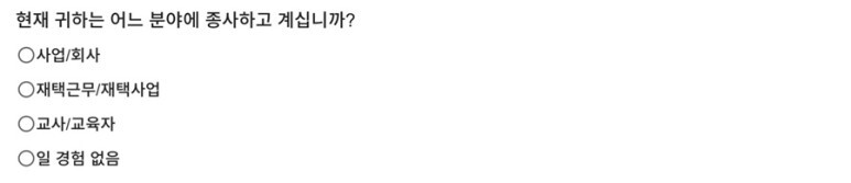 1. 현재 귀하는 어떤 분야에 종사하고 계십니까?